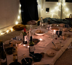 The Blue Kitchen is an ongoing project exploring how we gather through food. At its core is a roaming supper club: intimate, immersive dinners that reimagine space, shift social dynamics, and celebrate eating as a creative and communal act. Each event plays with theme, format, and mood — from indoor picnics to conceptual installations — often in collaboration with guest chefs to bring new perspectives to the table.