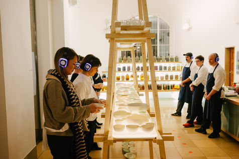 I worked closely with Marije on this immersive medi-tasting experience, created with 2-Michelin-star chef Felix Schneider (ETZ). The project explored the feeling and perception of time through storytelling, space, and taste. I helped shape the structure of the installation with design iterations, made porcelain bowls for the tasting, created the menu display, and supported everything from prep to install to day-of logistics. I also coordinated with teams across countries and languages to help bring all the moving parts together. It was a wild, beautiful project that asked guests to slow down, pay attention, and rethink their relationship to time.